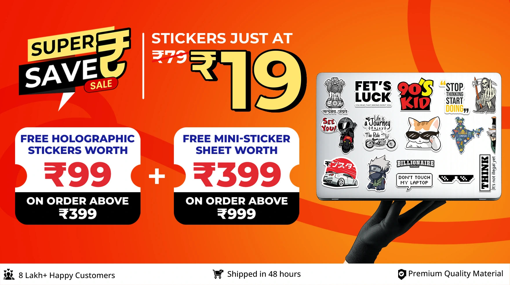 Within a few months, we were the talk of the town. Months passed and we became India's largest Online Sticker-Selling online store. We take pride in saying that to date we have satisfied over 8 Lakh+ and 80 Lakh + stickers sold