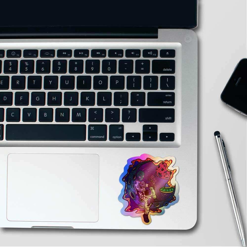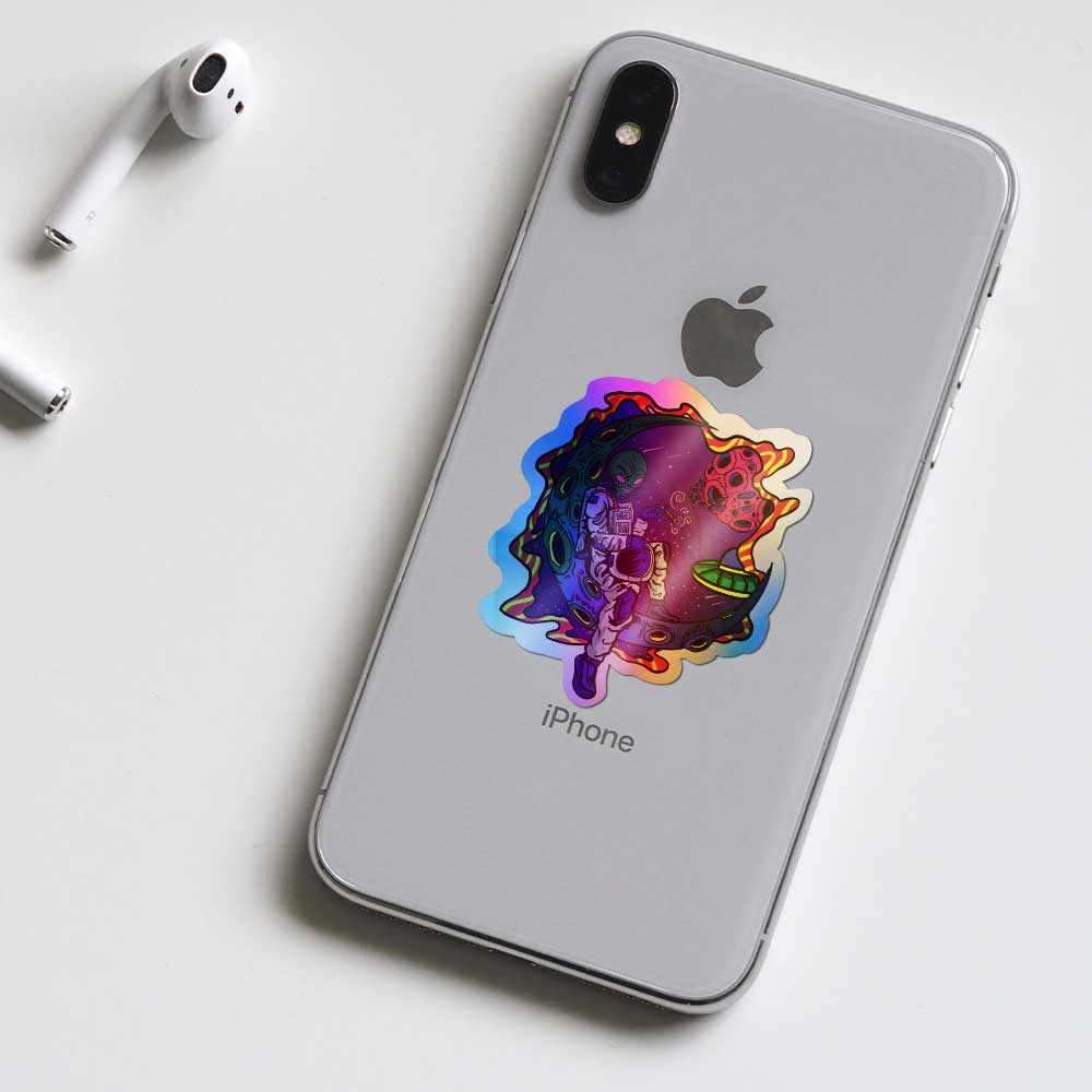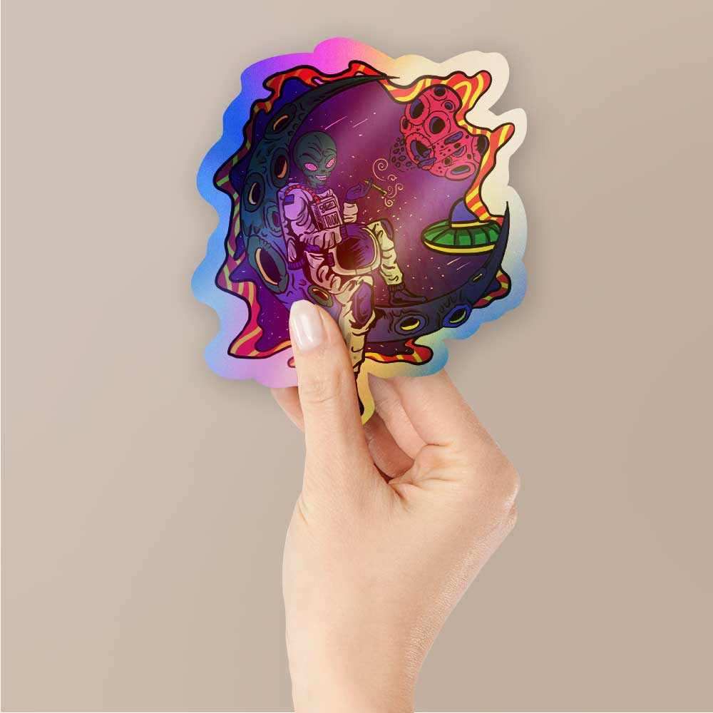 Alien on moon Holographic Stickers