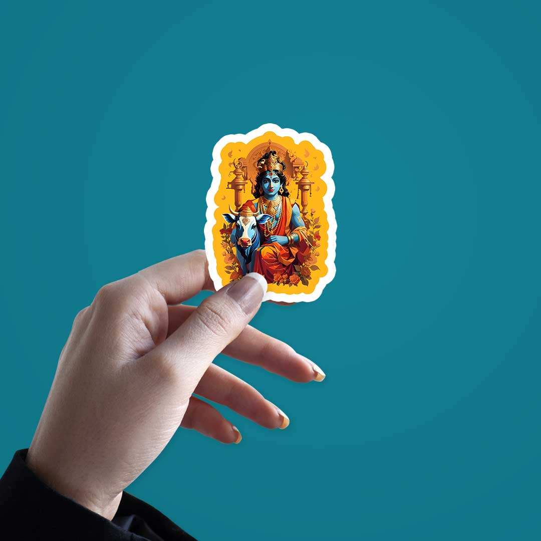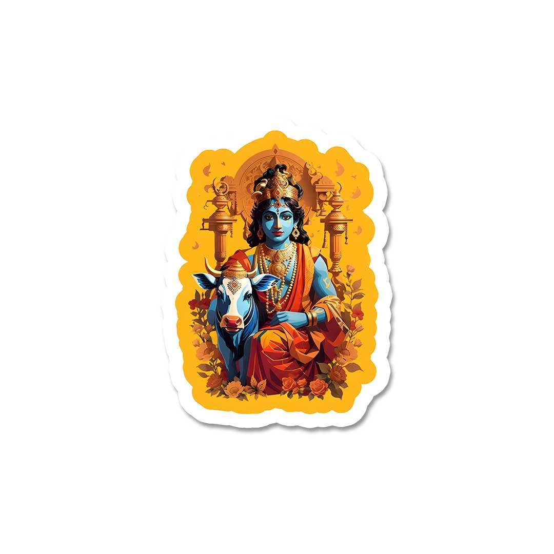 Krishna And Cow Sticker