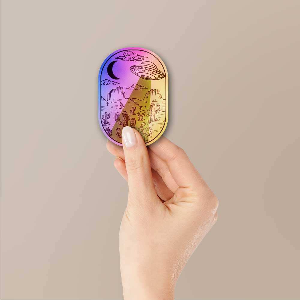 Spaceship In Desert Holographic Sticker